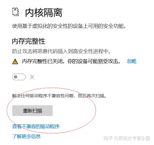 我们先看看这个内存完整性开关到底有什么作用,如果不处理会有什么样的后果。