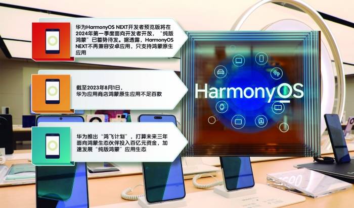 按照华为公布的计划,HarmonyOS NEXT开发者预览版将在2024年第一季度面向开发者开放,“纯版鸿蒙”已蓄势待发。